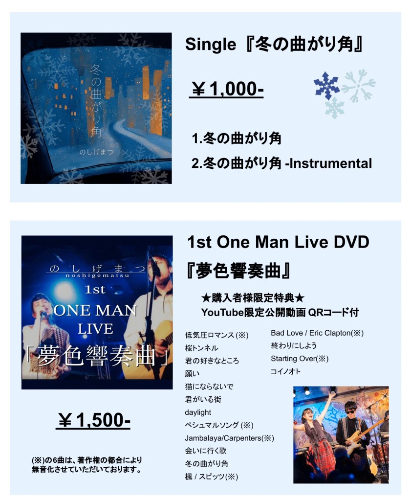 CD・DVD・GOODS ライブで販売しているCD・グッズをご紹介♪ 通販ご希望の方はSNSのDMまでご連絡下さい!(支払方法はPayPayか銀行振込のみ) 共有: クリックして X で共有 (新しいウィンドウで開きます) X Facebook で共有するにはクリックしてください (新しいウィンドウで開きます) Facebook いいね 読み込み中…