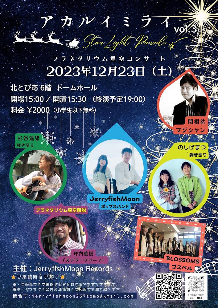 ●2023.12.23 (土)「アカルイミライvol.3」 @北とぴあ6F ドームホール(最寄り:王子駅)Open15:00/Start15:30 15:30〜15:55 に演奏予定