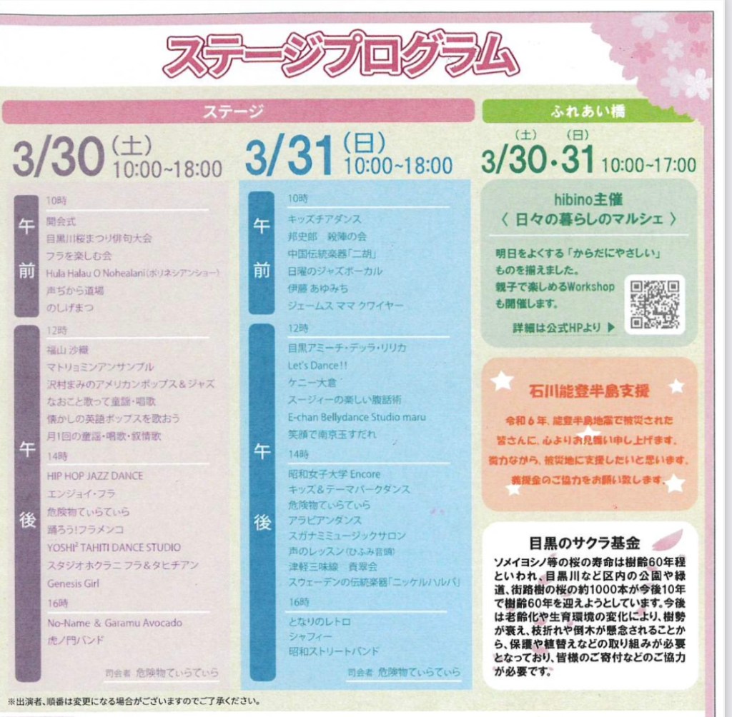 ●2024.3.30 (土)昼 目黒川桜まつり 11:40~12:00に出演予定 (観覧無料)