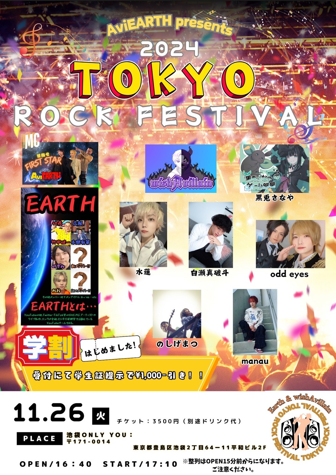 ●11/26火「TOKYO ROCK FESTIUVAL」@池袋Only You Open : 16:40/Start : 17:10 ¥3,500+1drink ※のしげまつは17:40頃〜ご予約はこちら