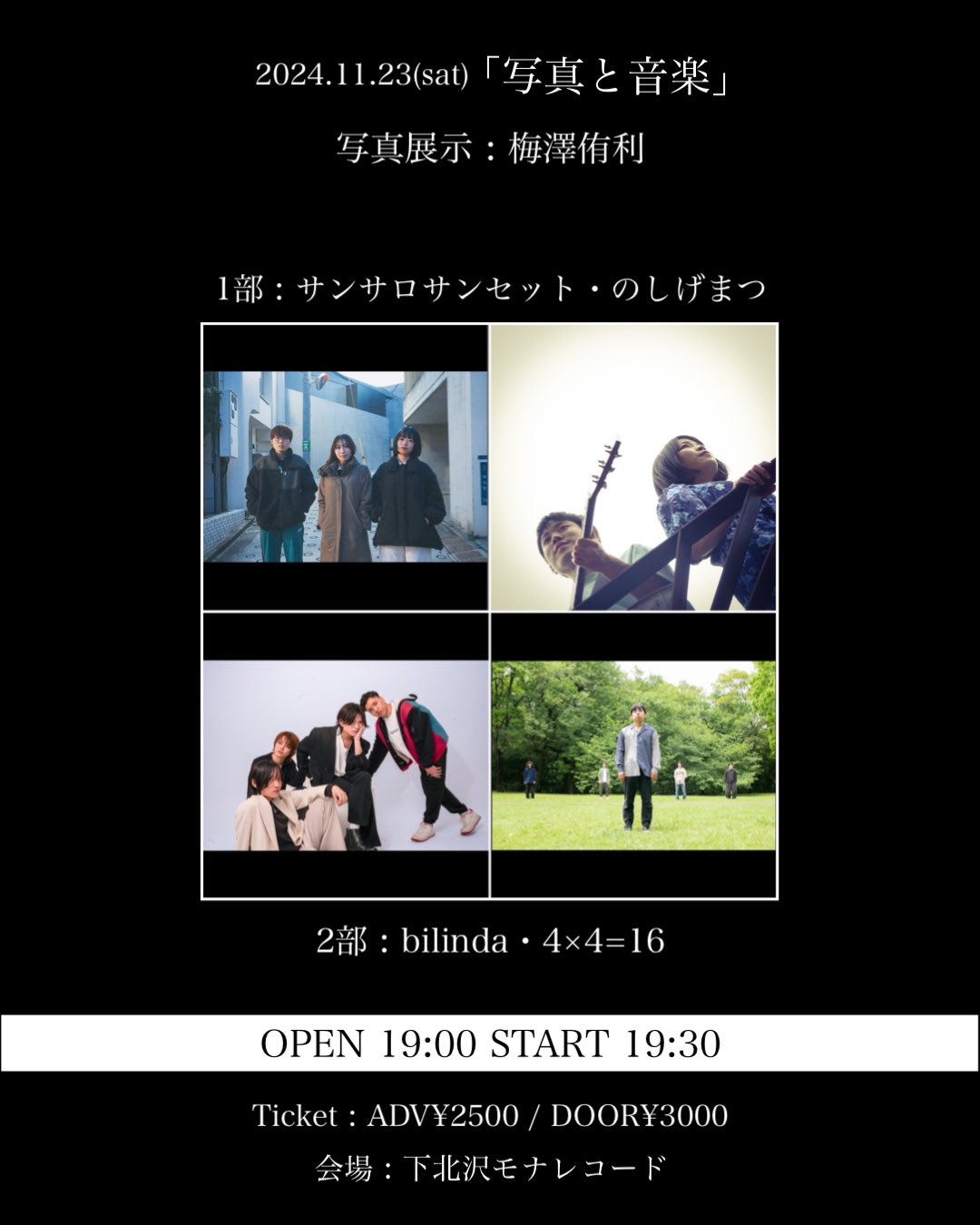 ●11/23土「写真と音楽」@下北沢モナレコード Open : 19:00/Start : 19:30 ADV¥2,500 DOOR¥3,000 ※のしげまつは20:10頃〜