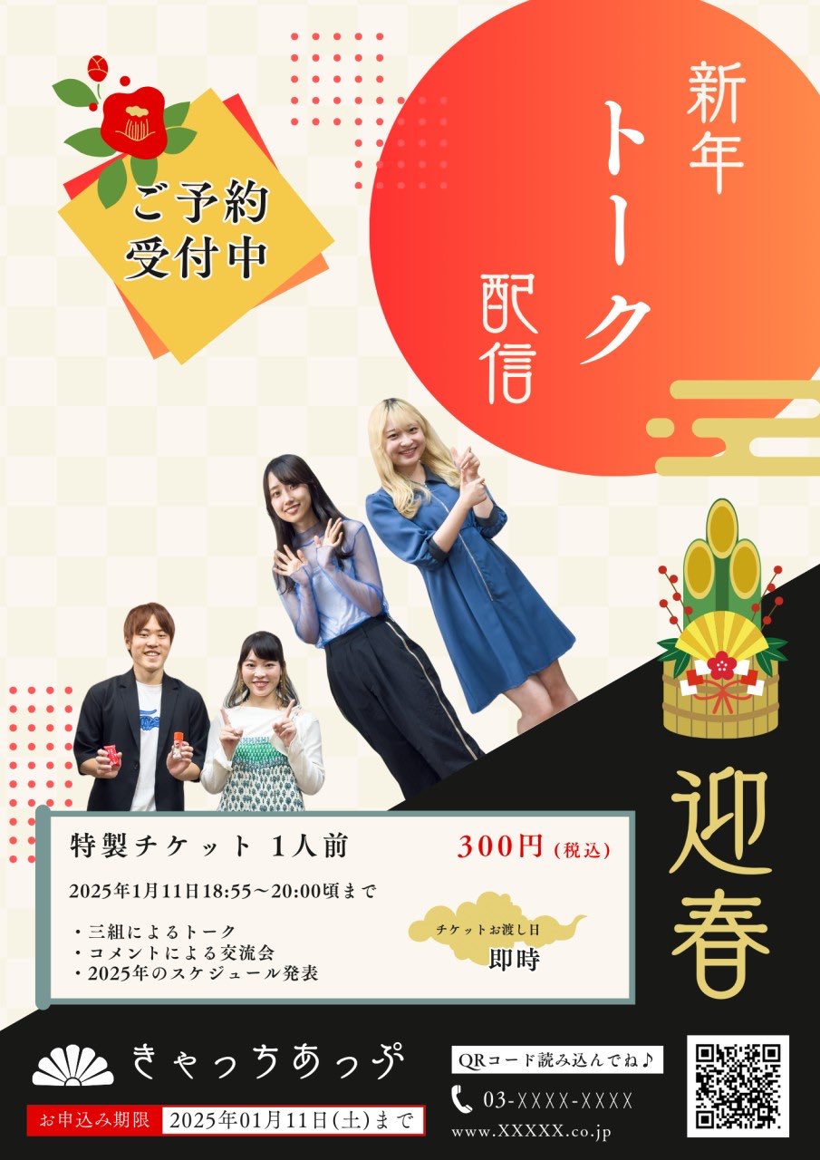 ●2025/1/11土 「新年トーク配信」@ツイキャス 18:55-20:00頃 ¥300 チケットはこちらから