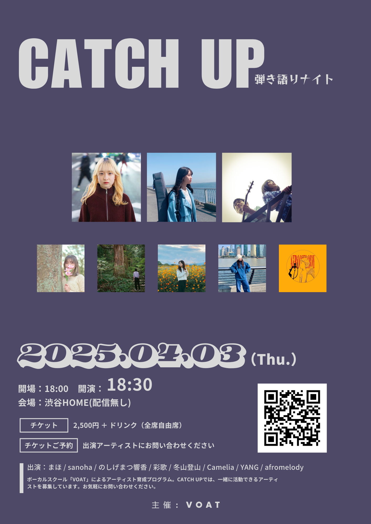 ●2025/4/3木「CATCH UP 弾き語りナイト」@渋谷HOME Open18:00/Start18:30 ¥2,500+1drink チケットはこちらから(響香のみの出演です)