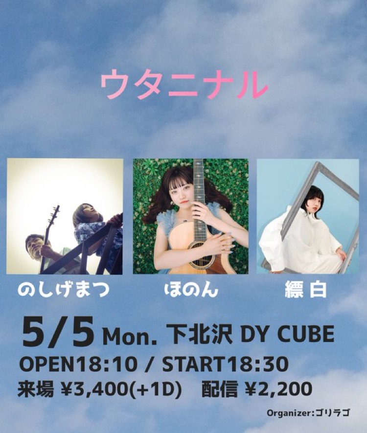 ●2025/5/5月祝 「ウタニナル」@下北沢DY CUBE Open18:10/Start18:30 ¥3,400+1drink 配信¥2,200 ご来場予約はこちらから/配信チケット購入はこちらから