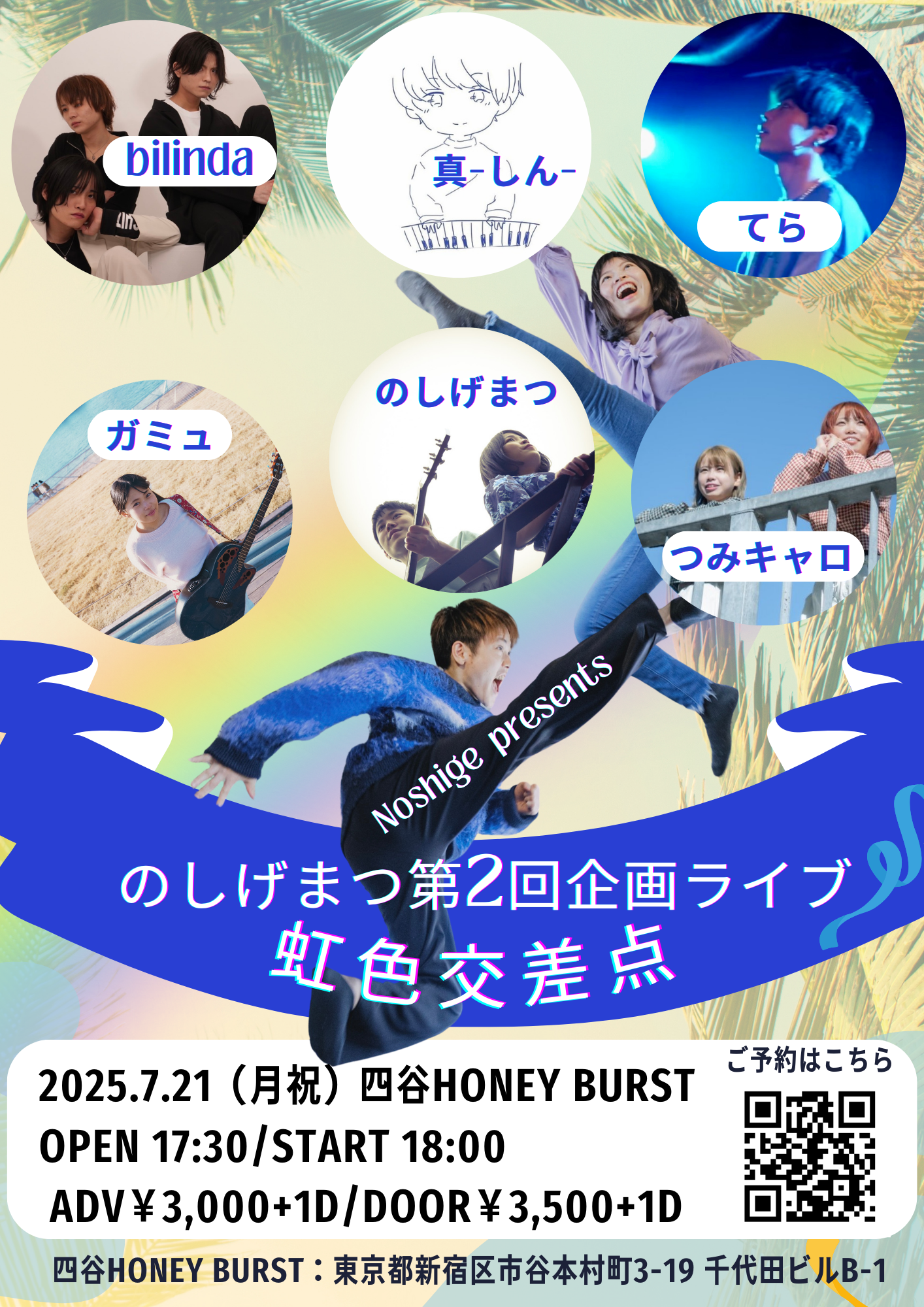 ●2025/7/21月祝 のしげ第2回企画ライブ「虹色交差点」@四谷Honey Burst Open17:30/Start18:00 ADV¥3,000(+1D)/DOOR¥3,500(+1D) チケットはこちらから