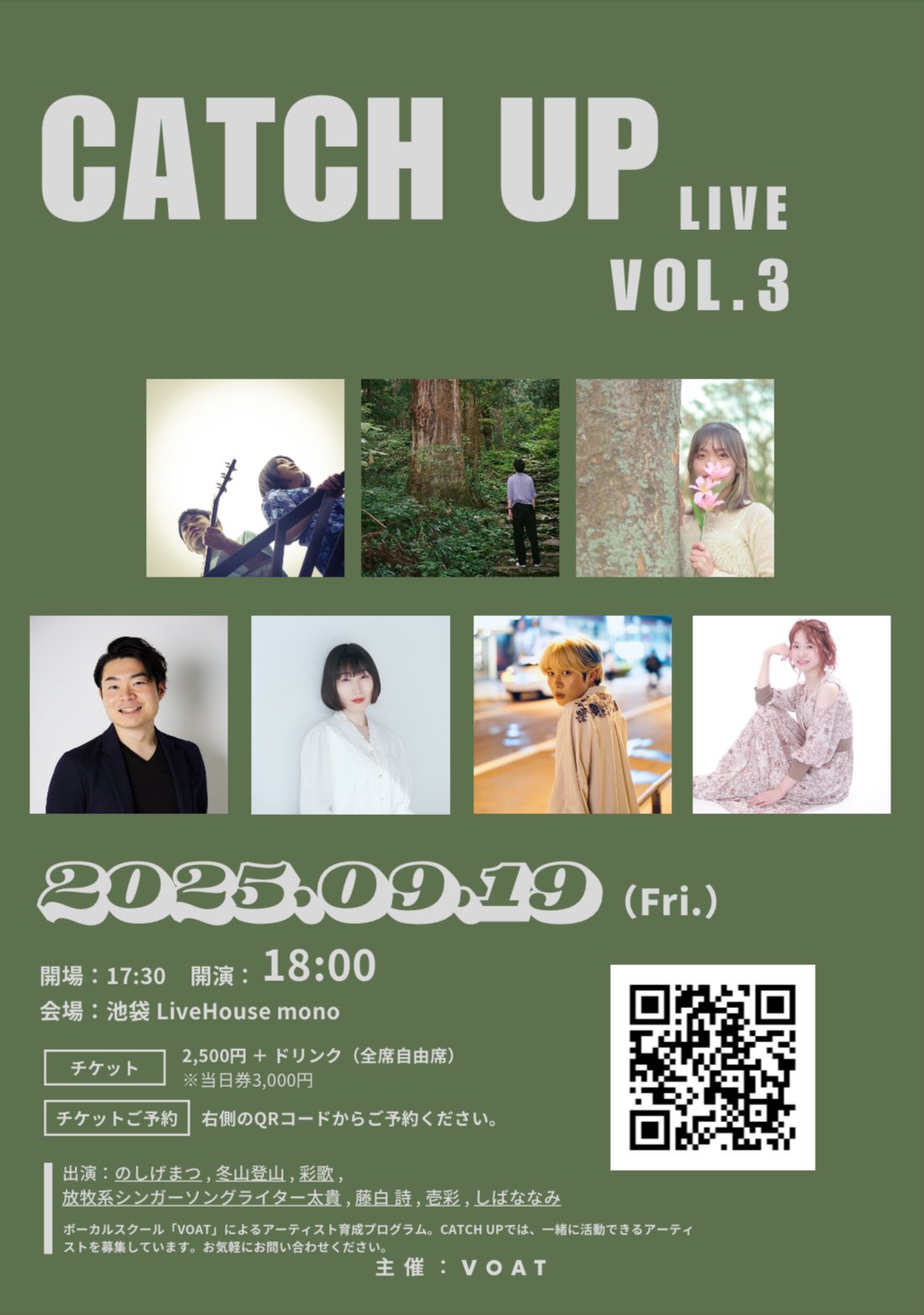 ●2025/9/19金「CATCH UP LIVE vol.3」@池袋LiveHouse mono Open 17:30 / Start 18:00 ¥2,500+1D チケットはこちらから
