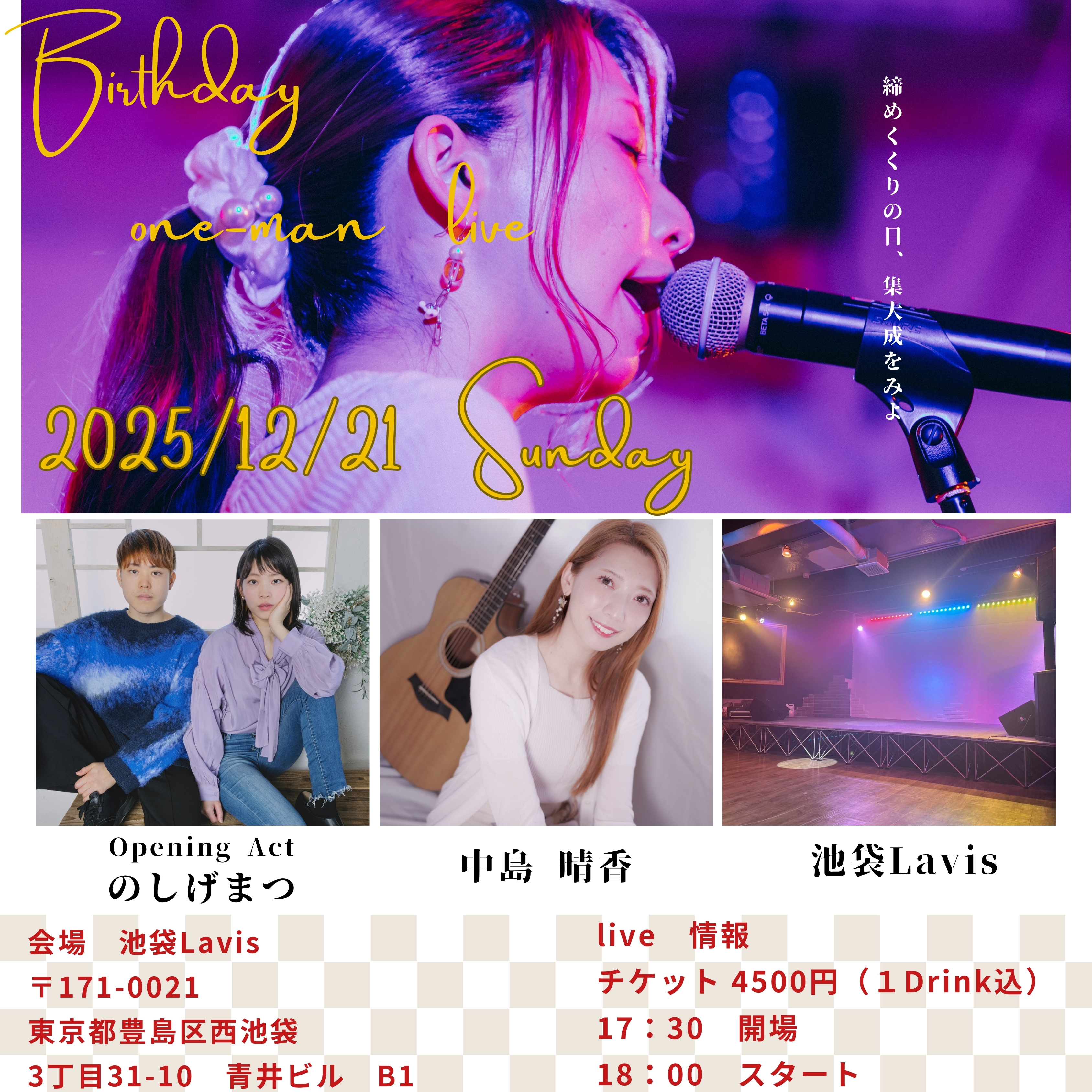 ●2025/12/21日 「中島晴香OneMan Live」@池袋Lavis Open17:30/Start18:00 ¥4,500(1D込) チケットはこちらから